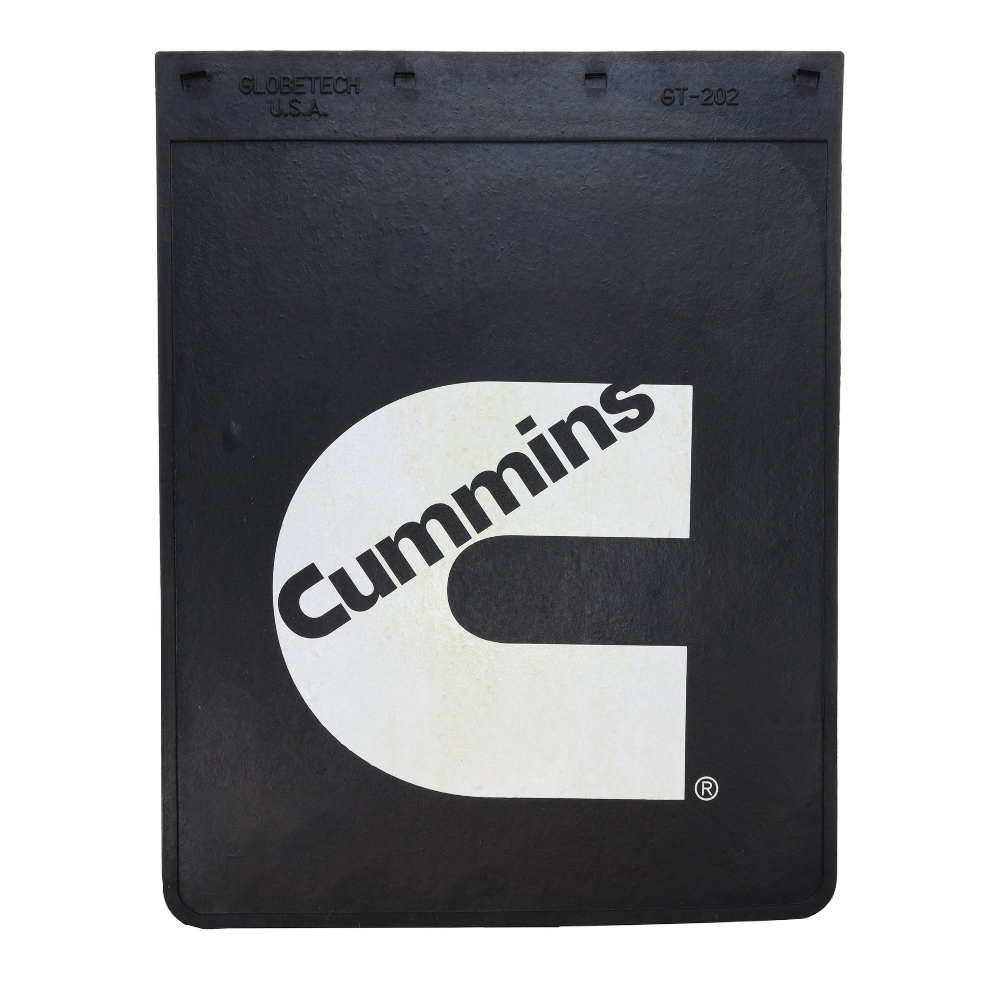 Show off the pride you have in your rig with these protective mud flaps of fine workmanship made with green materials and designed with diesel fans and professional truckers in mind. (And adhere to DOT regulations) Deflect water and gravel or a combination of debris types by adding these Cummins mud flaps engineered and designed to offer protection without increasing drag on your semi truck. Full coverage and easy to install. Help prevent snow and ice from becoming a road hazard for other drivers beside and behind you. These are more durable than plastic because they are made of 100 percent blended rubber. Not only will you proudly display the Cummins logo but your mud flap can help save the paint job on your semi and prevent rust from chipped paint. Mud flaps protect your vehicle from damaging debris and also help protect other drivers sharing the road. A splash guard can be your first line of defense against grime and slush to protect the undercarriage of your truck. This is sold as a single unit and not as a pair. Installation hardware is not included.